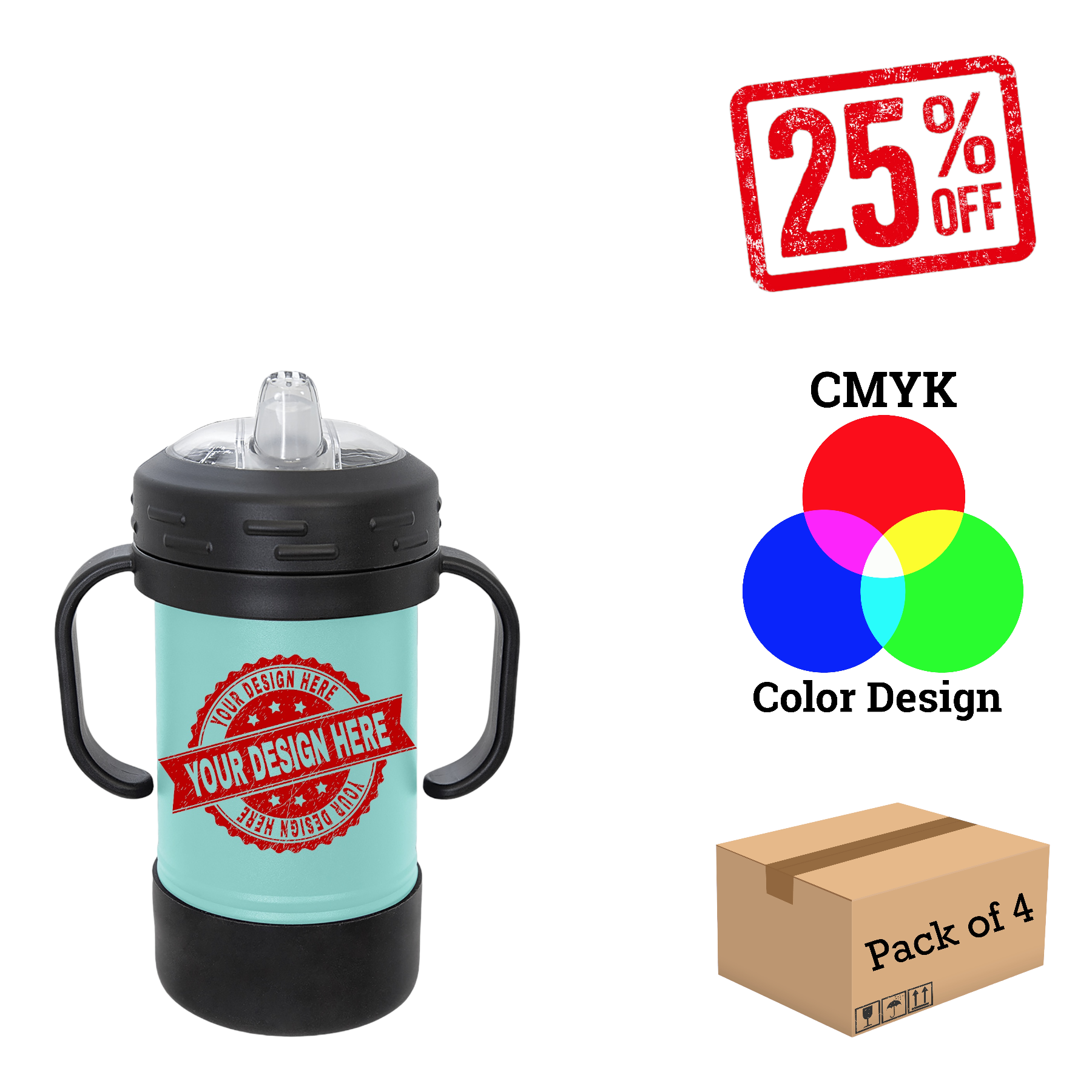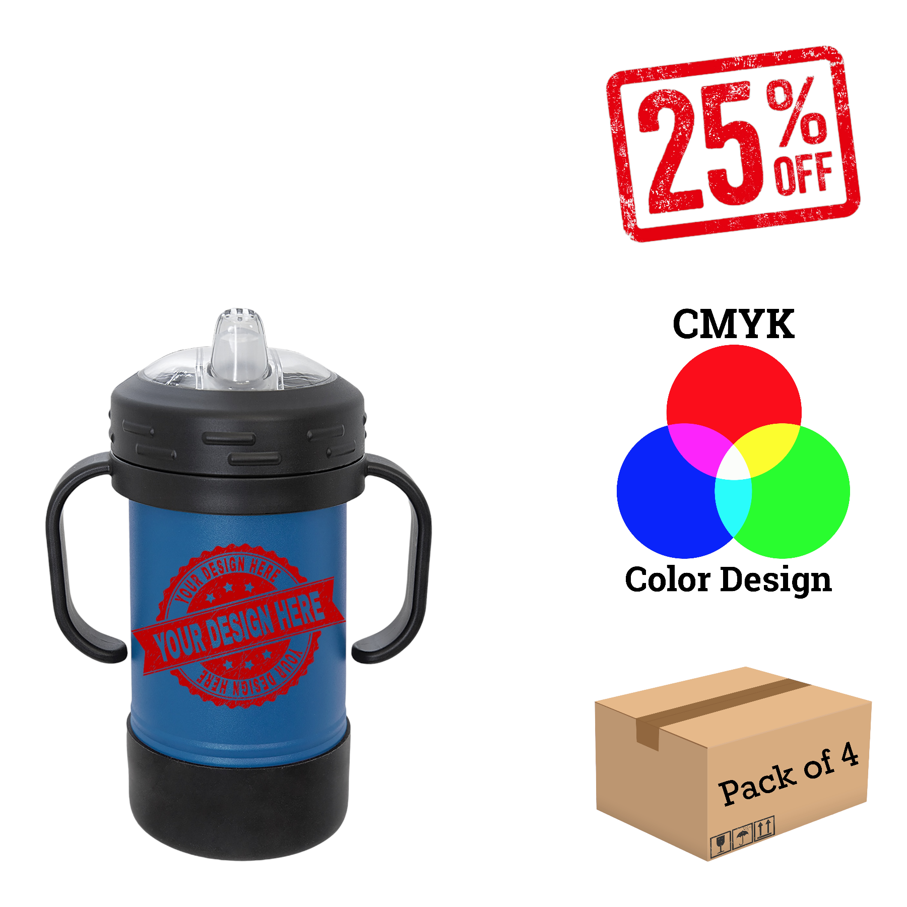Polar Camel Sippy Cups are 10oz double wall insulated powder coated cups featuring removable handles, a silicone boot, and spill proof lid. The screw on lid features a hard plastic spout with a rubber leak proof valve. The cup can be used with or without the heavy-duty plastic handles that attach to the lid. They offer plenty of space for personalization and can be taken apart for easy cleaning. The plastic lid may need an occasional deep cleaning.